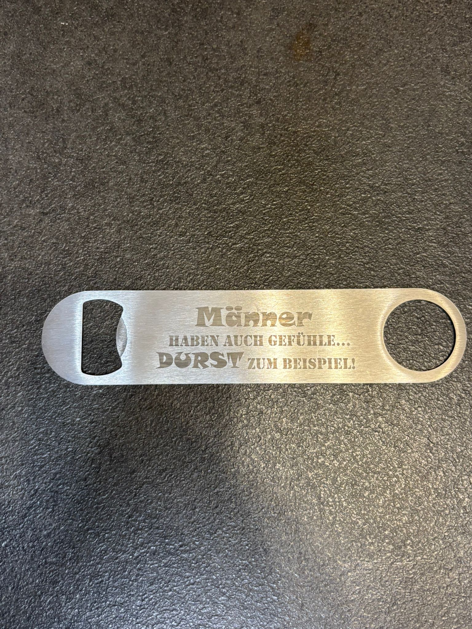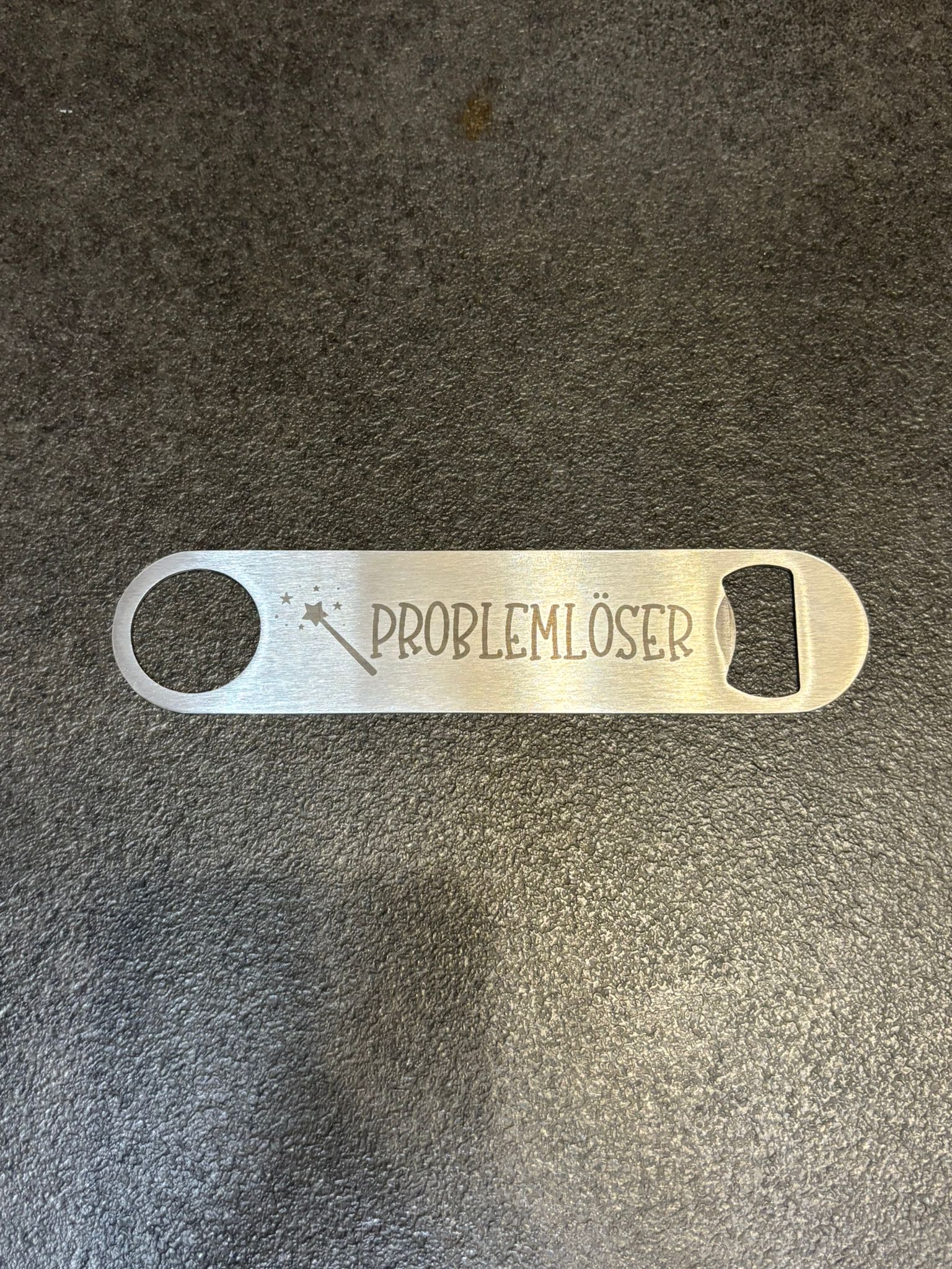 Die individuell gestalteten Gravuren wie „Glückspils“, „Problemlöser“, „Flaschenkind“ oder humorvolle Sprüche machen jeden Öffner zu einem echten Hingucker. Perfekt geeignet als Geschenkidee für Männer, Vatertag, Geburtstage oder Junggesellenabschiede.